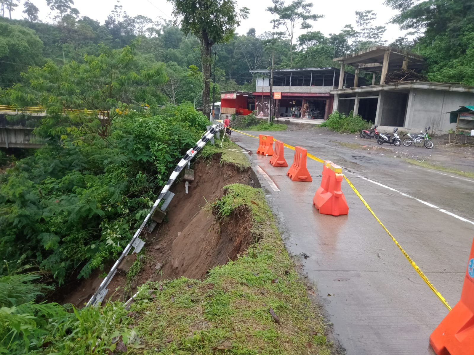 “Di daerah Gunung Sentir, material longsor dari tebing pinggir jalan hingga menutupi sebagian bahu jalan dan hanya bisa di lewati kendaraan roda dua saja,” ujarnya.
