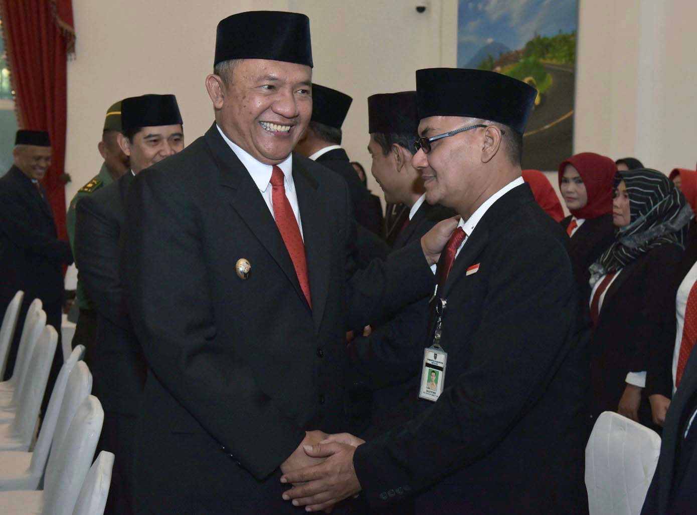 “Saya sampaikan selamat pada pejabat yang baru saja dilantik. Selamat bekerja. Dan segera menyesuaikan diri dengan lingkungan yang baru. Segera melaksanakan komunikasi dengan baik,” pesan Wabup Iwan.